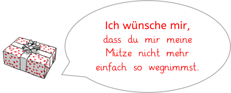 "Ich wünsche mir, dass du mir meine Mütze nicht mehr einfach so wegnimmst."